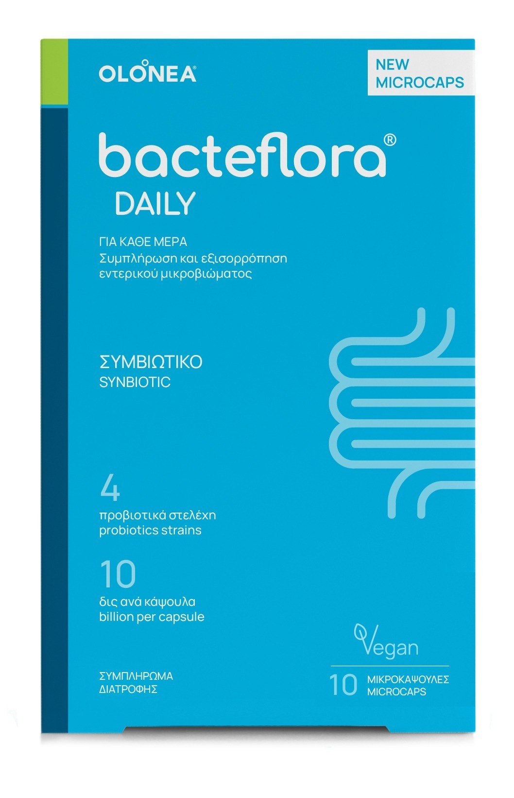 OLONEA bacteflora DAILY προβιοτικά και πρεβιοτικά για καθημερινή εξισορρόπηση του εντερικού μικροβιώματος.